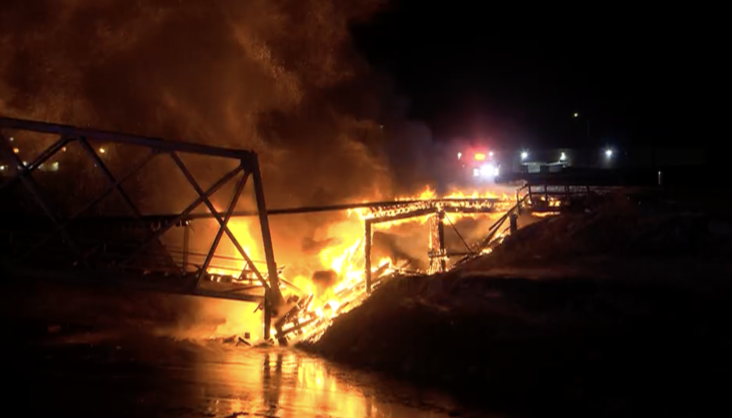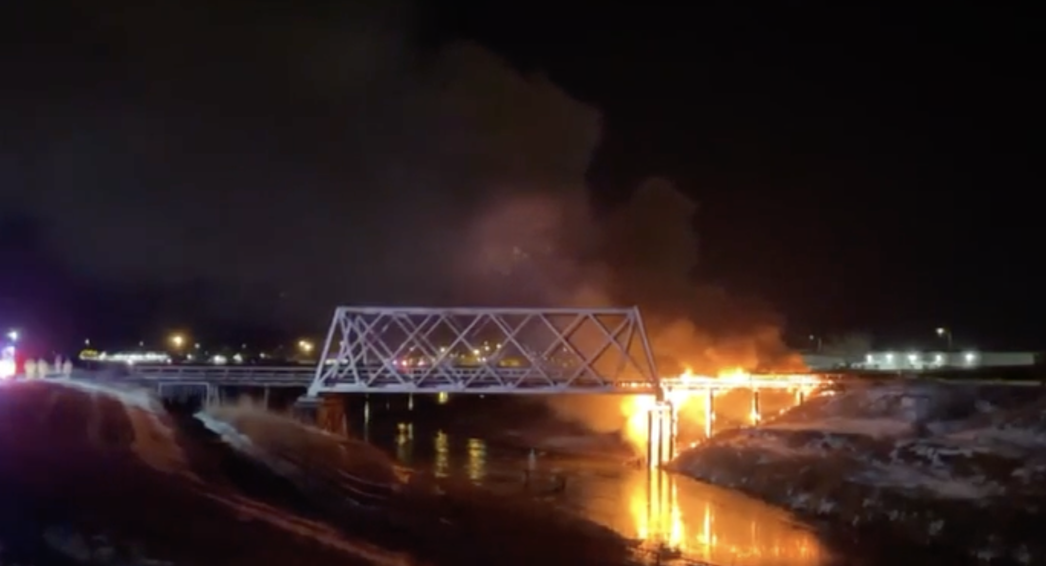 KOLN's reporter on the scene could see the bridge engulfed in flames and heavy smoke rising from the area miles away.